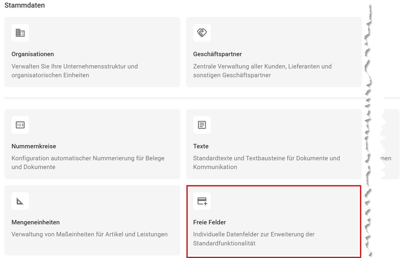 Öffnen Sie über das Menü oder über die Kachel Freie Felder.