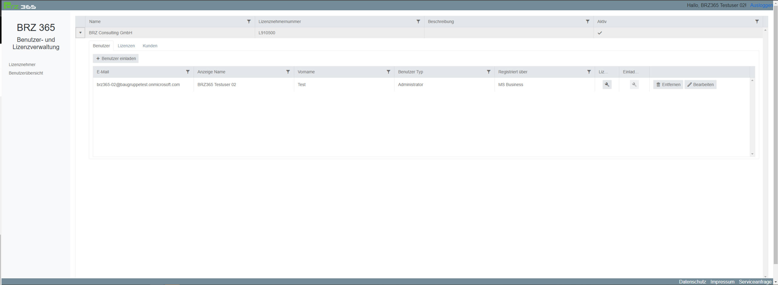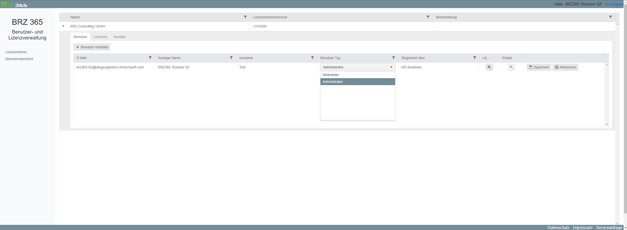 BRZ 365 Administration - Administratoren und Mitarbeiter einladen und lizenzieren