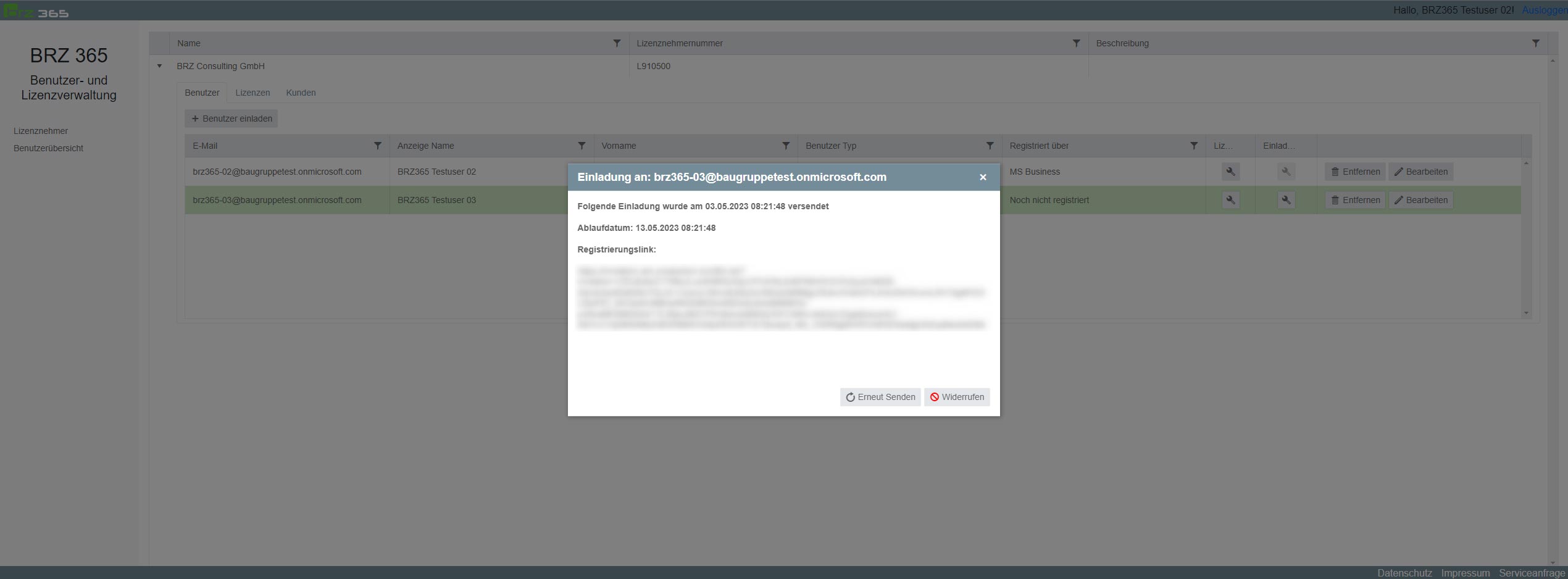 BRZ 365 Administration - Einladung erneut versenden / revidieren