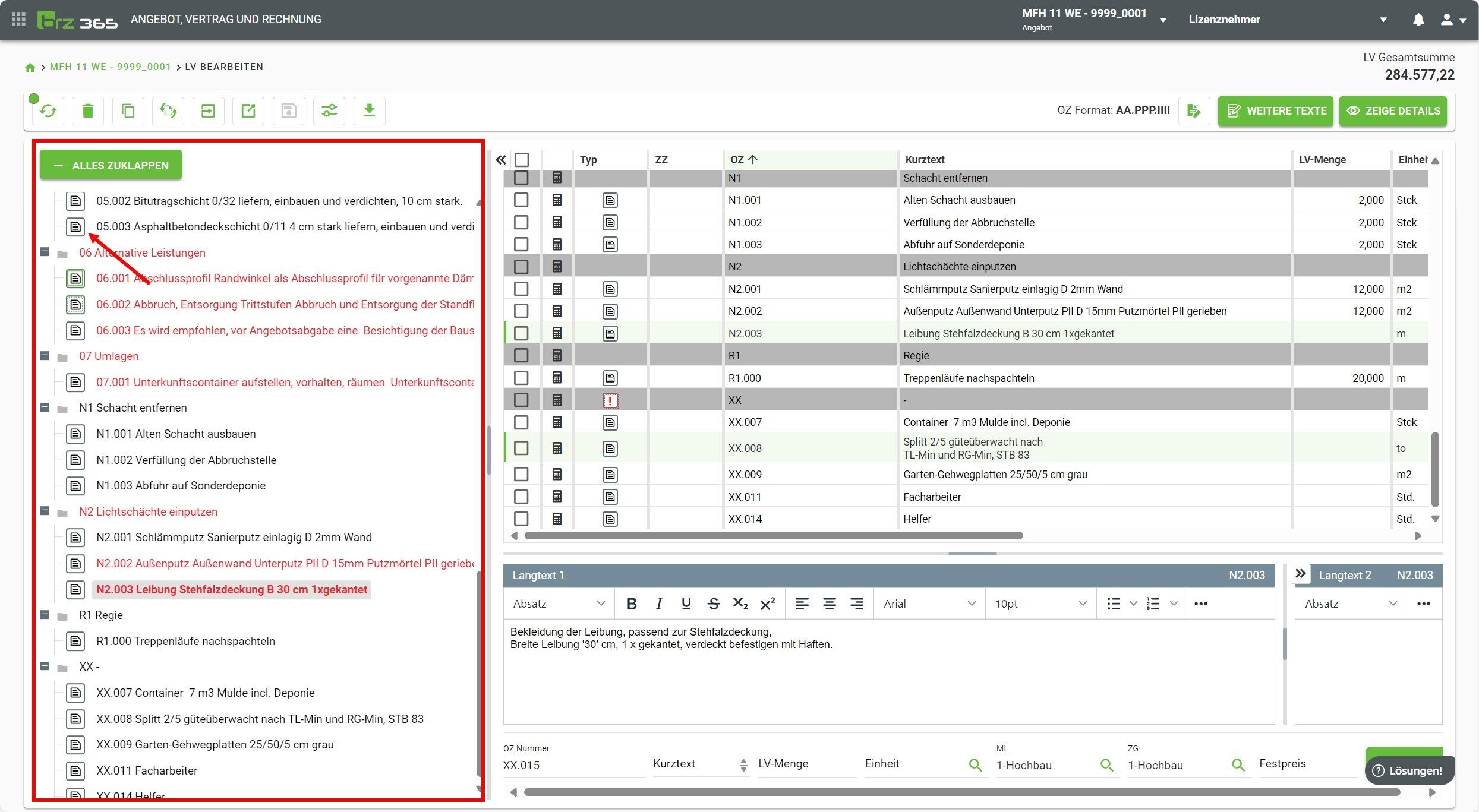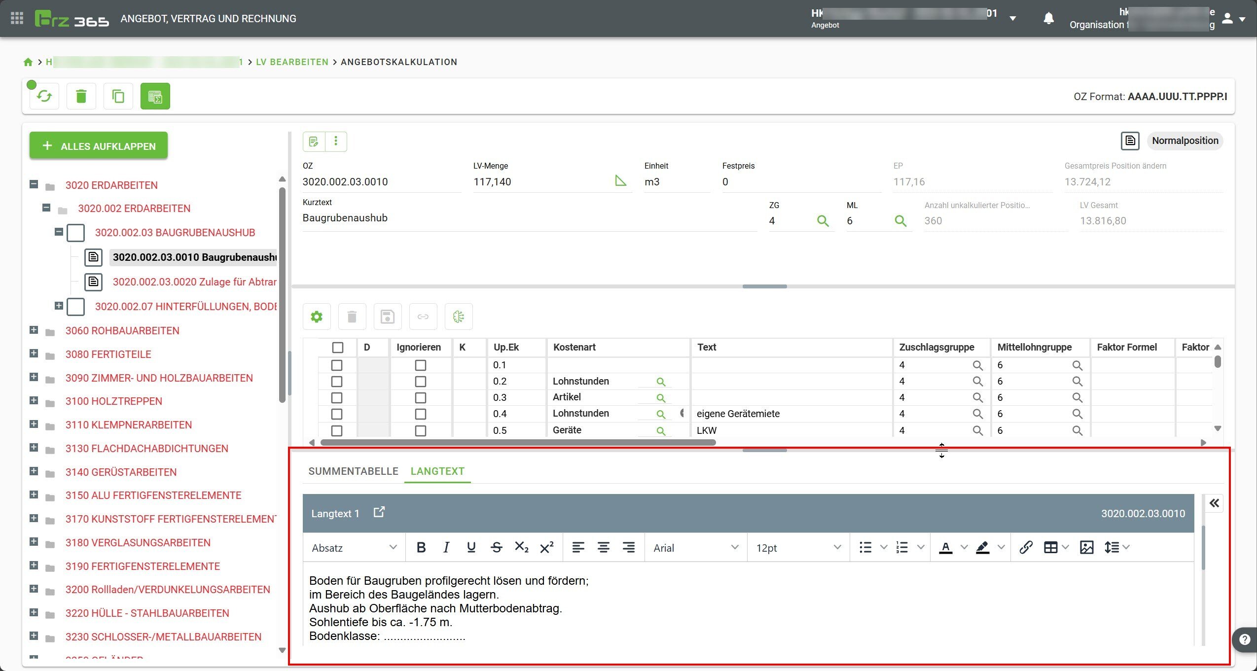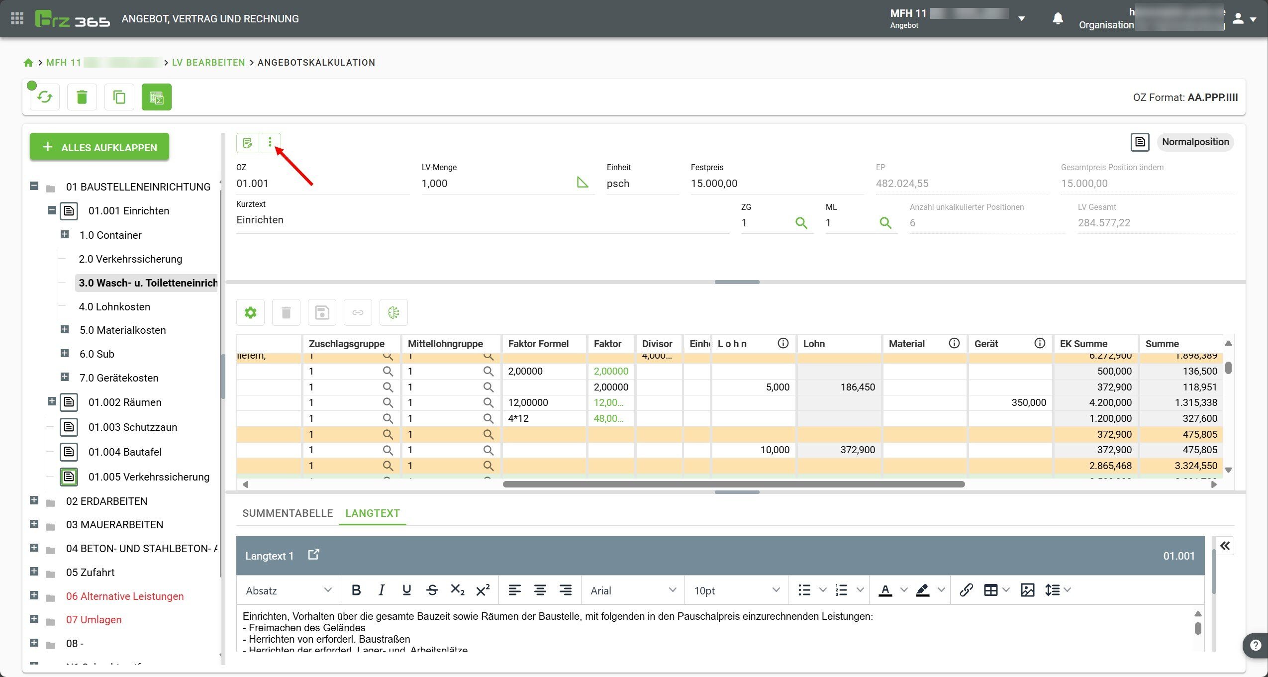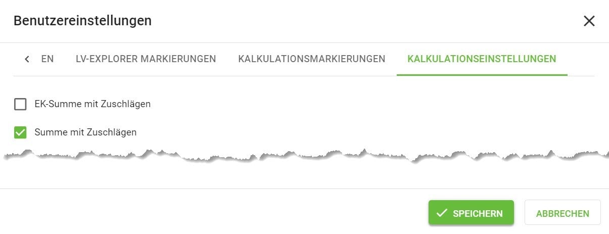 Ist die Checkbox deaktiviert, so werden alle Änderungen sofort gespeichert, das Leistungsverzeichnis sowie die Gesamtsumme werden aber erst nach erneutem durchrechnen aktualisiert.
