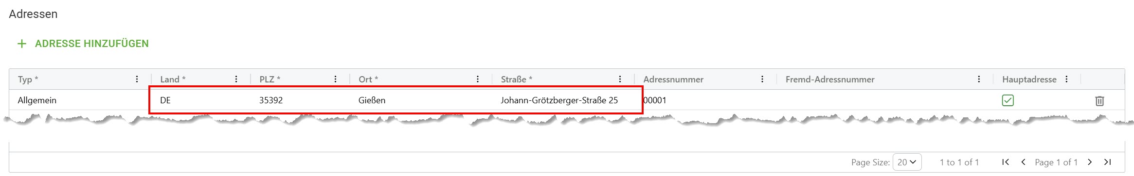 In der Adresszeile sind die Angaben Land, PLZ, Ort und Straße zwingend.