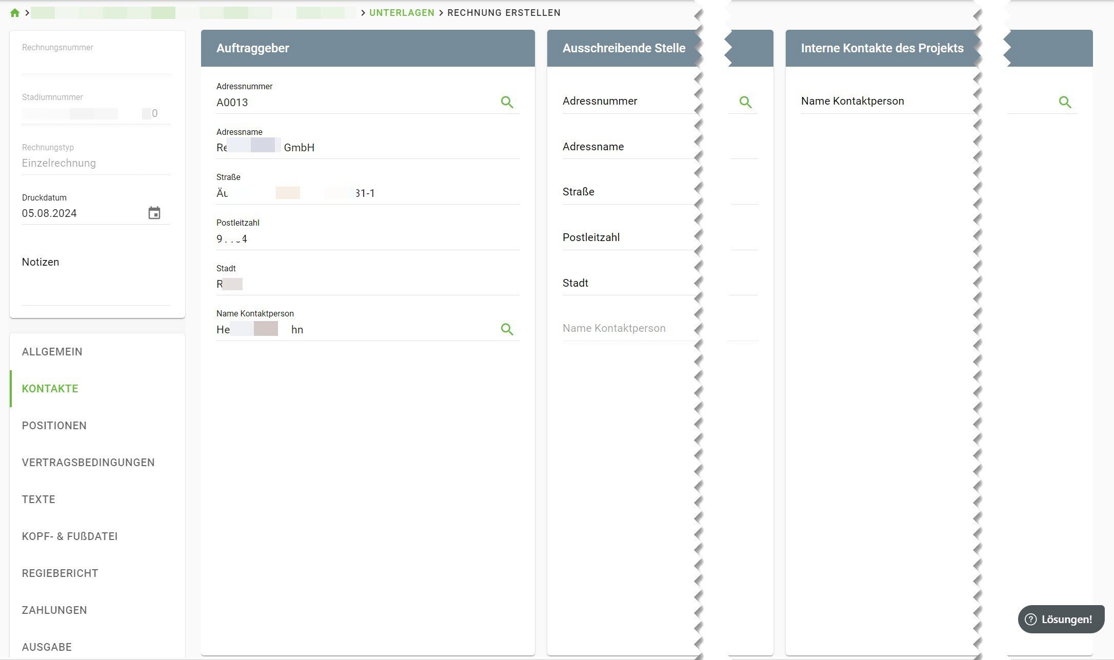 Tragen Sie in AVR bei der Erstellung eines neuen Projekts oder in einem bestehenden Projekt den Geschäftspartner als Auftraggeber ein, der eine E-Rechnungs-E-Mail hat.