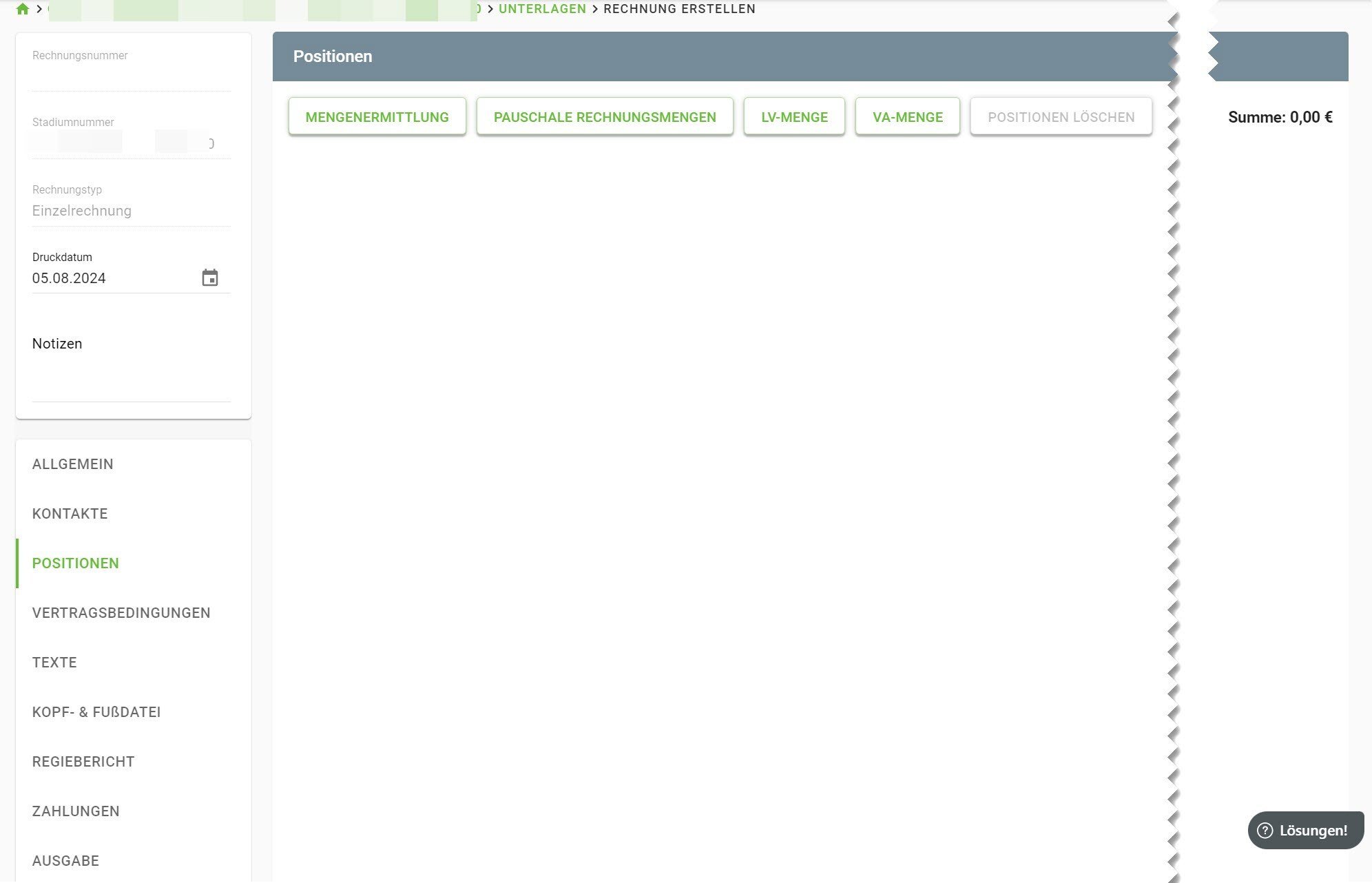 Im Auftragsstadium muss der Benutzer unter Vorgänge eine Einzel-Rechnung, Abschlags-Rechnung oder Schluss-Rechnung - erstellen, indem die erforderlichen Details eingegeben werden.