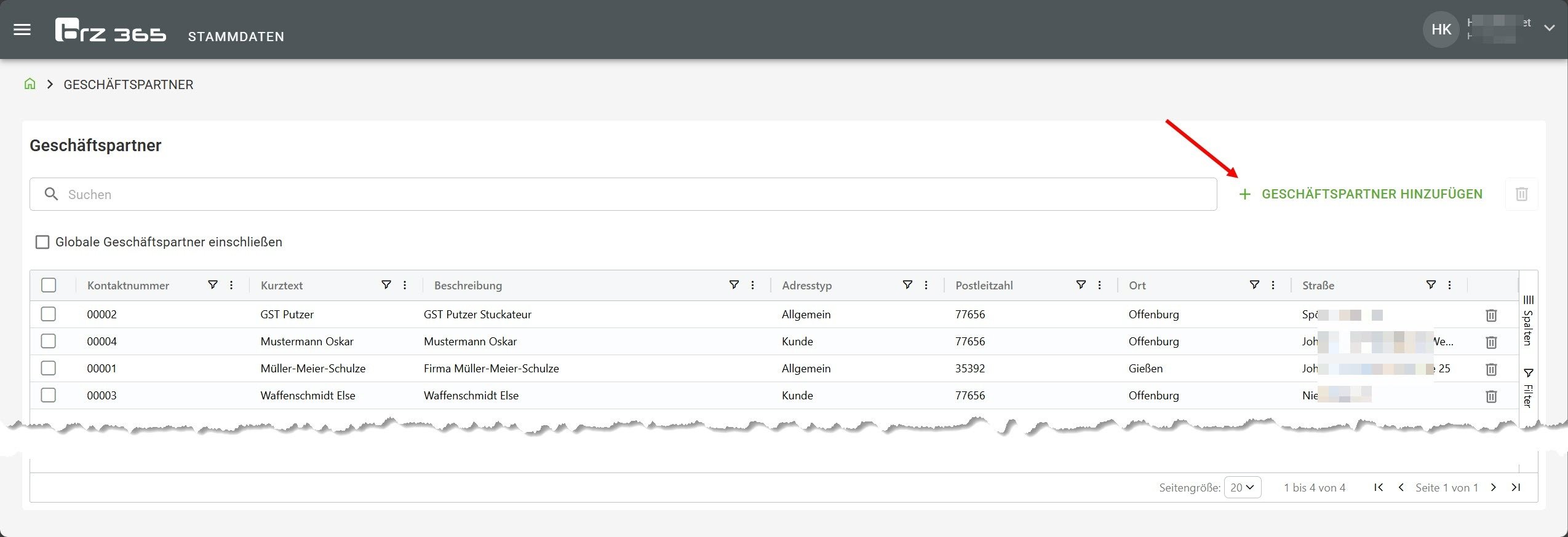 Das Erstellen von Geschäftspartnern wird in den Stammdaten genauer erklärt