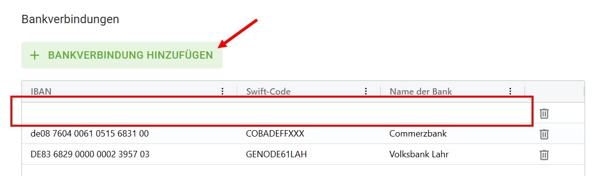 ❌ Achtung: Die E-Rechnung übermittelt max. 3 Bankverbindungen