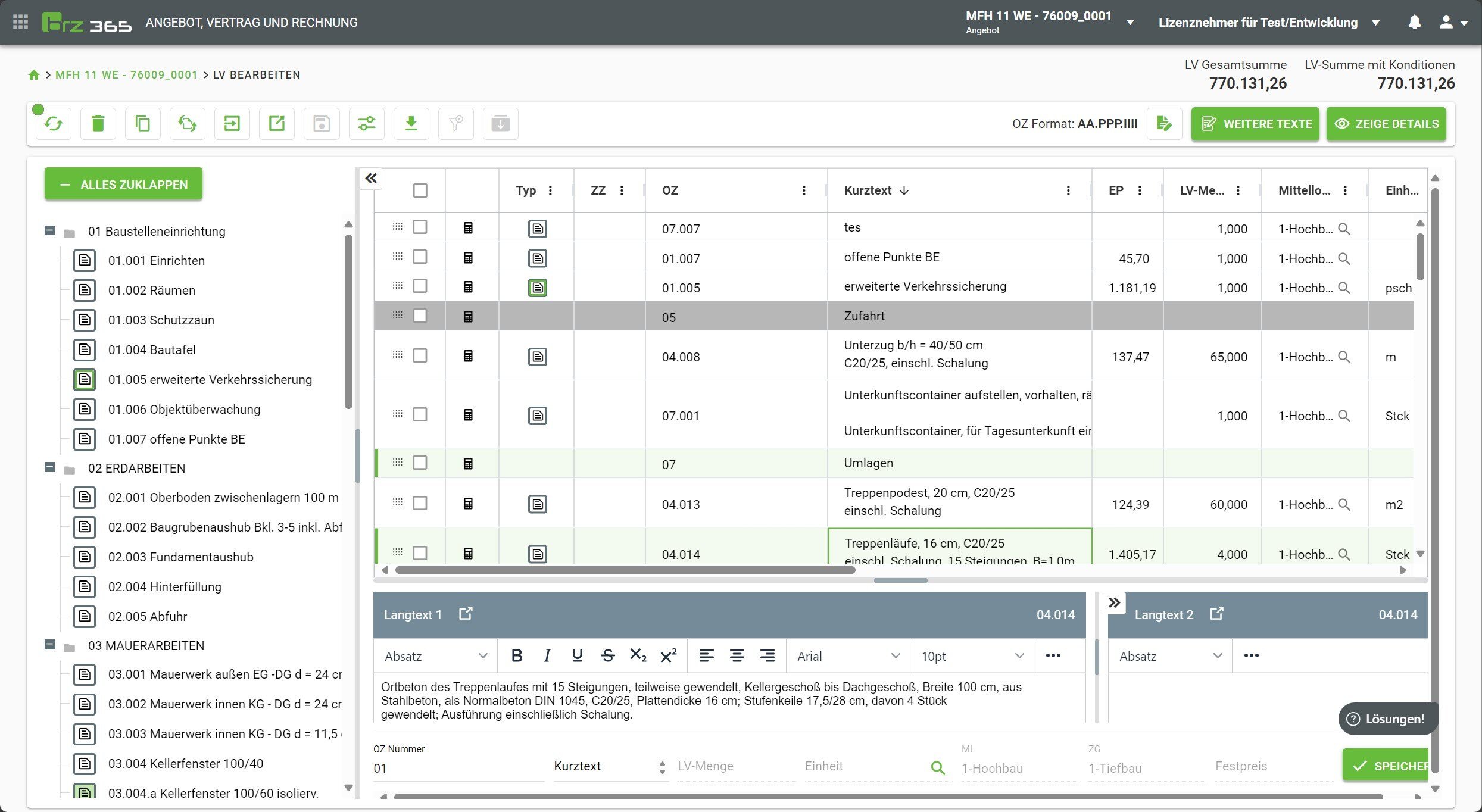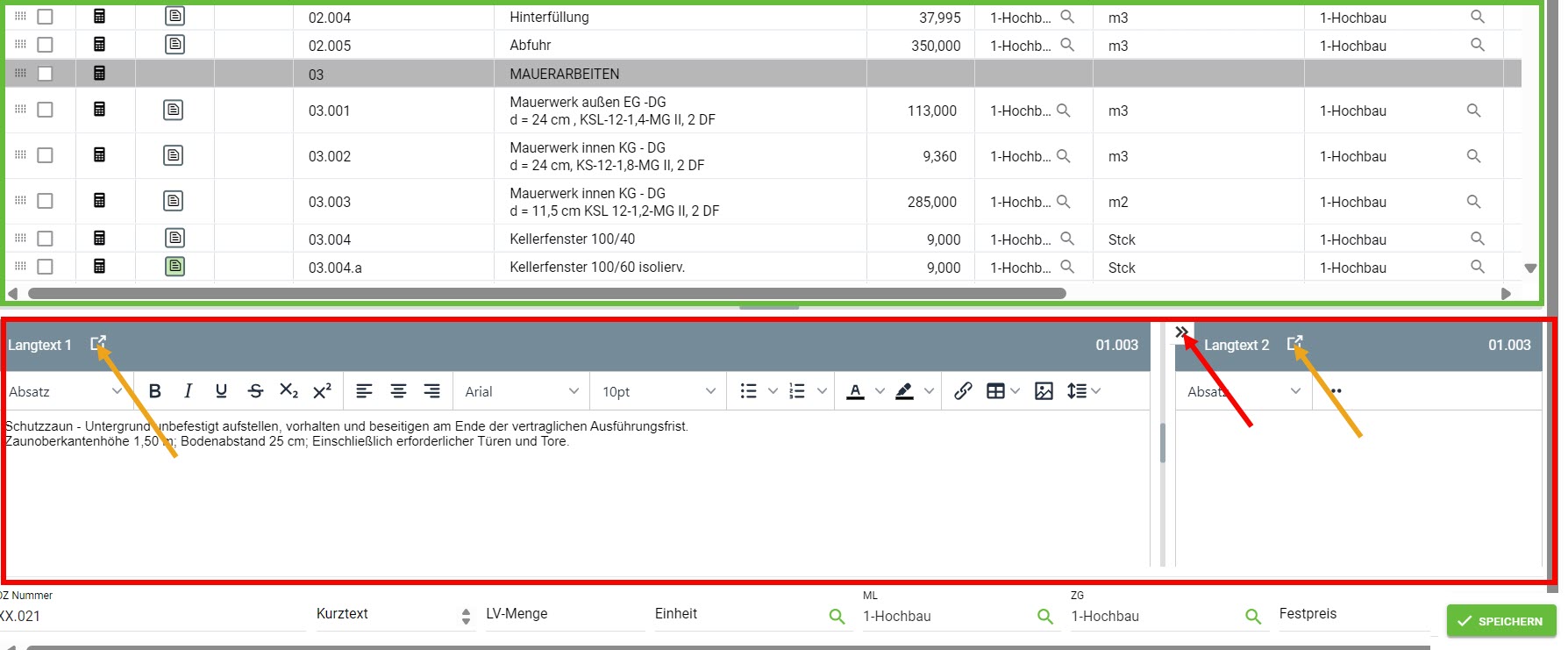 ✅ Tipp: Über den Langtext lassen sich auch Bieterergänzungen aus importierten GAEB-Dateien ergänzen.