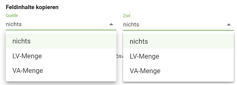 Feldinhalte kopieren -> Kopieren der LV-Menge nach VA-Menge und umgekehrt.