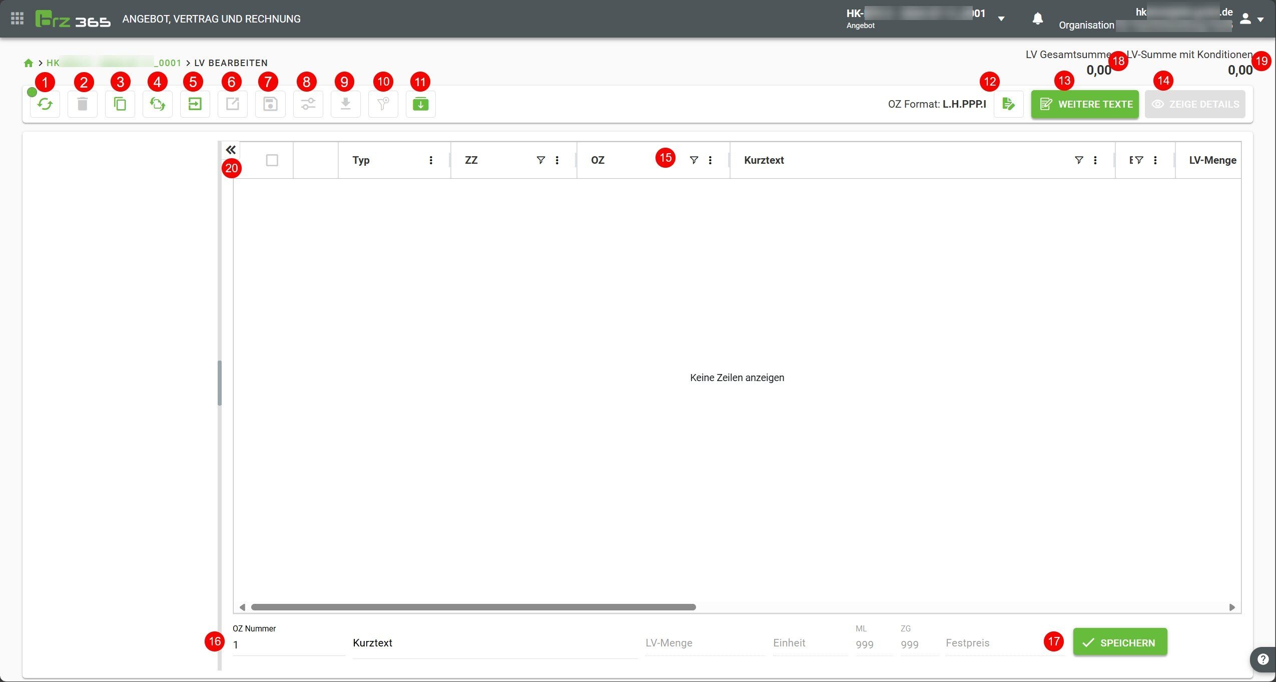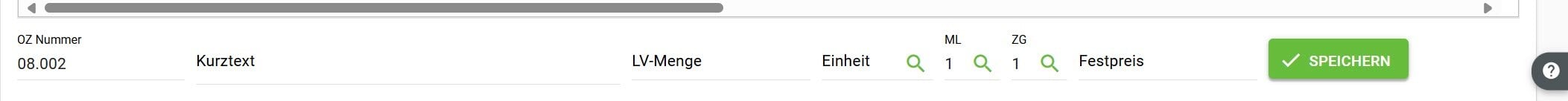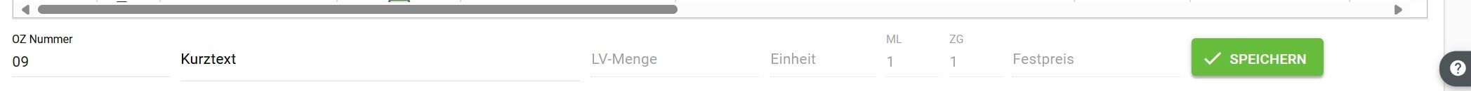 Die Eingabe einer OZ-Nummer ist die Mindestanforderung damit der Speichern Knopf frei geschalten wird. Alle anderen Eingaben wie z.B. LV-Menge, Einheit usw. können auch später erfolgen.