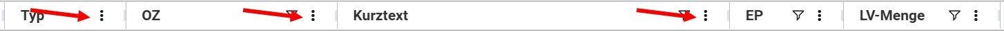 Über die 3-Punkte gelangen Sie jeweils in ein Kontextmenü mit den Möglichkeiten die Spalten zu sortieren, zu fixieren und zu wählen.