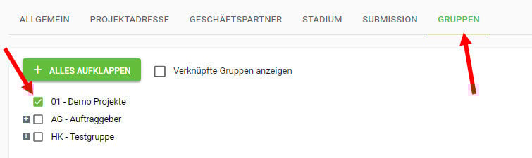 Sie verknüpfen das Projekt in welchem Sie stehen, in dem Sie eine oder mehrere Checkboxen mit dem Haken versehen.