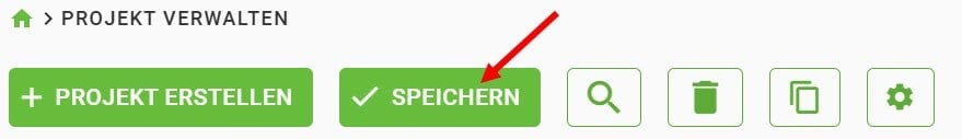 Das Projekt ist nun angelegt und für Benutzer in Ihrer Organisation sichtbar. Im Menüpunkt Projekt suchen kann dieses Projekt von zugelassenen Benutzern geöffnet und bearbeitet werden.
