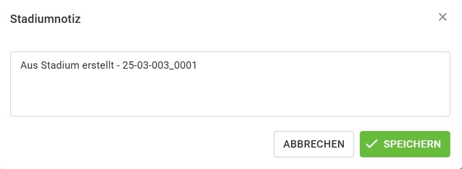 Das neue Stadium erhält automatisch eine Notiz 3. Diese können Sie verändern/ergänzen.