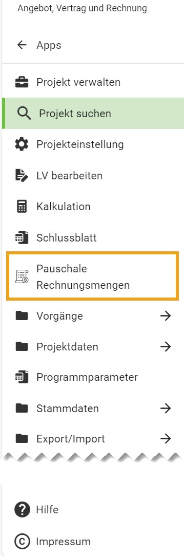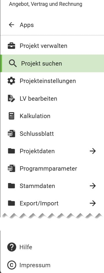 Öffnen Sie über das Navigationsmenü den Punkt Projekt suchen.