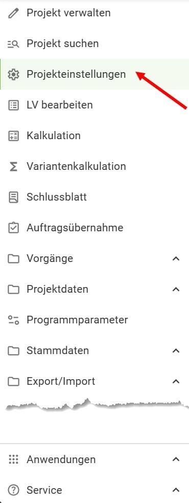 Öffnen Sie über das Navigationsmenü den Punkt Projekteinstellungen.
