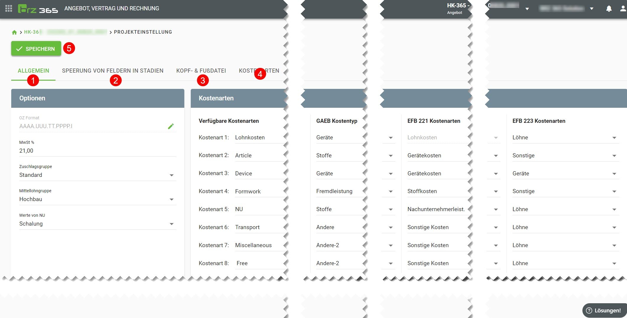 BRZ 365 Angebot, Vertrag & Rechnung -  Projekteinstellung