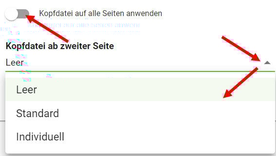 ✅ Tipp:  Wenn sie die Kopfdatei auf alle Seiten anwenden möchten, dann aktivieren sie diese Option.