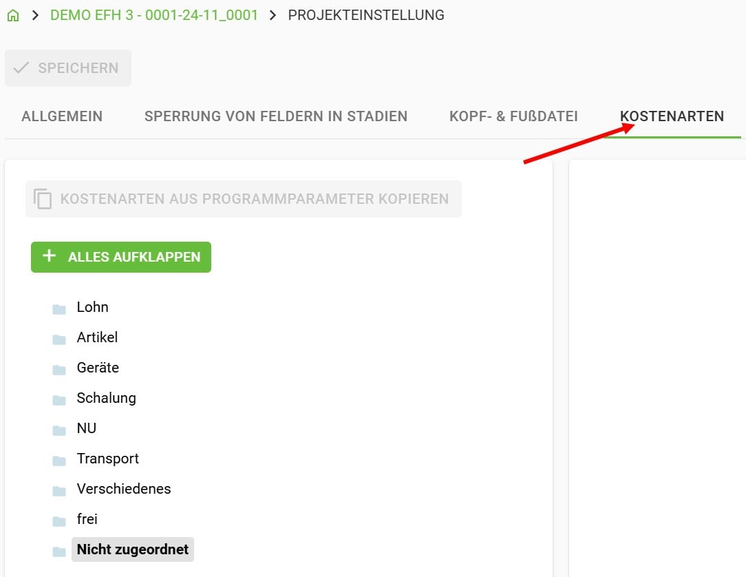 ❌ Achtung: Bei den Kostenarten ist die Funktion in den Programmparametern und in den Projekteinstellungen unterschiedlich.