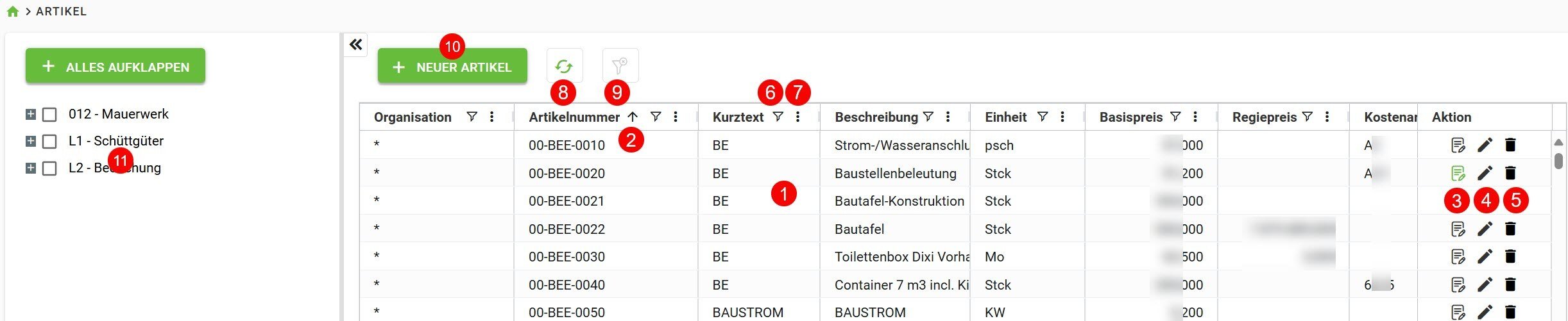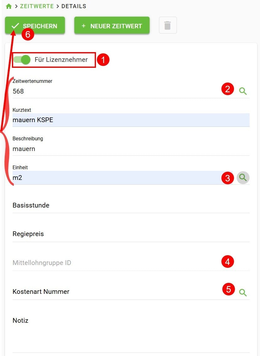 ✅ Tipp: Wir empfehlen Artikel, Geräte, Zeitwerte, Mittellohn- und Zuschlagsgruppen über Import Stammdaten einzulesen und zu pflegen. Hierzu wird jeweils eine .csv-Datei benötigt. Das passende Template kann dort zum Ausfüllen heruntergeladen werden->Wenn Sie hierbei Unterstützung benötigen, nehmen Sie gerne die Dienstleistung des Consulting-Teams in Anspruch.
