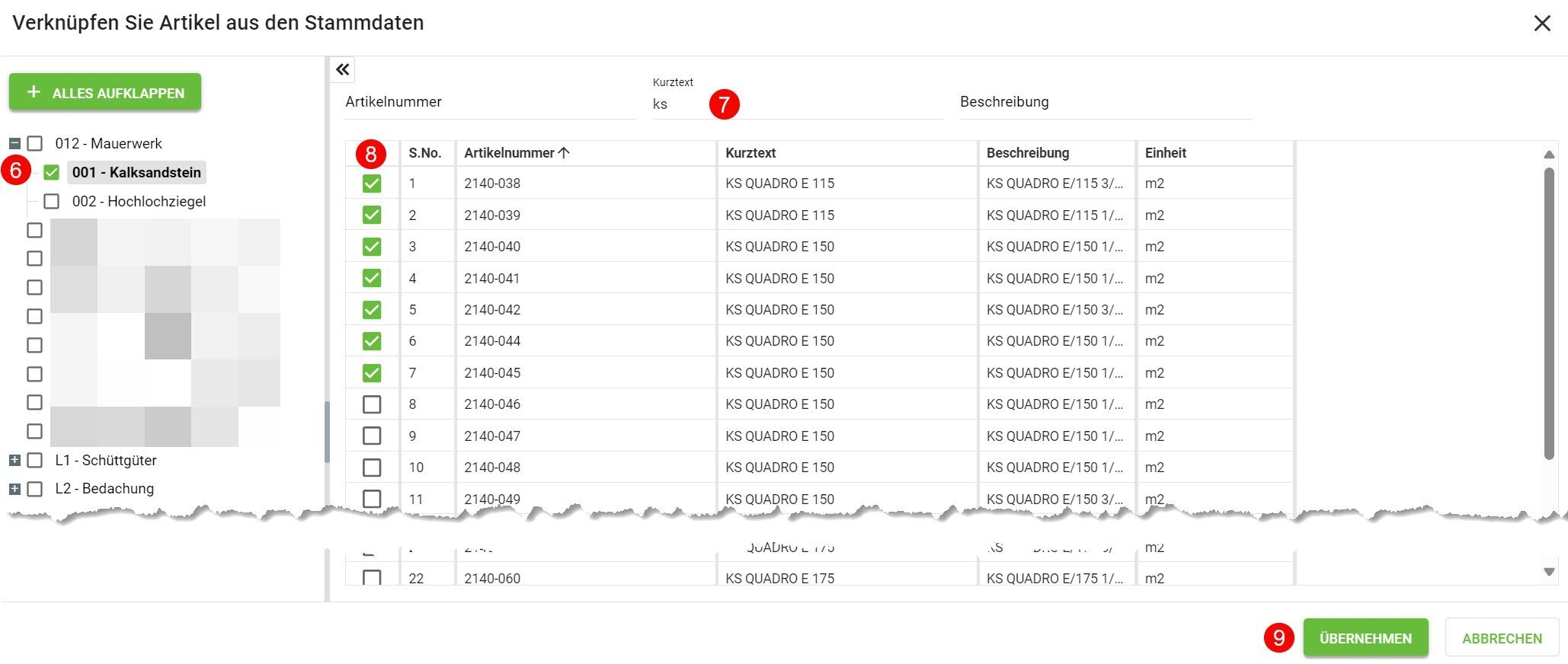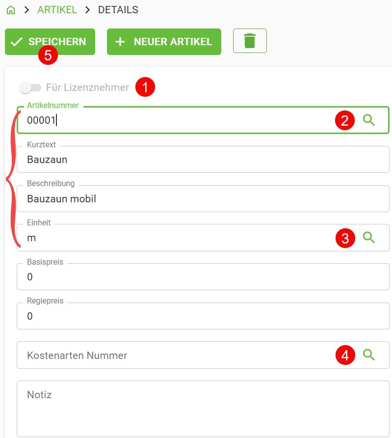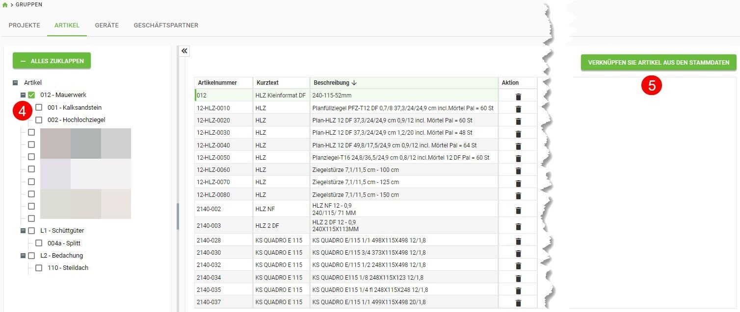 Weiterhin können Sie auf bestehende Artikel sowie Mittellöhne zurückgreifen.