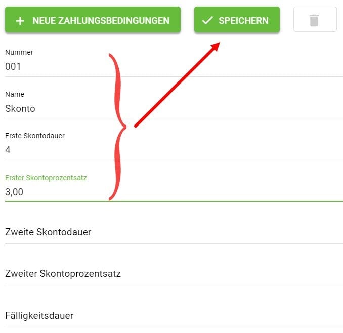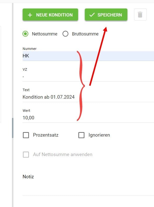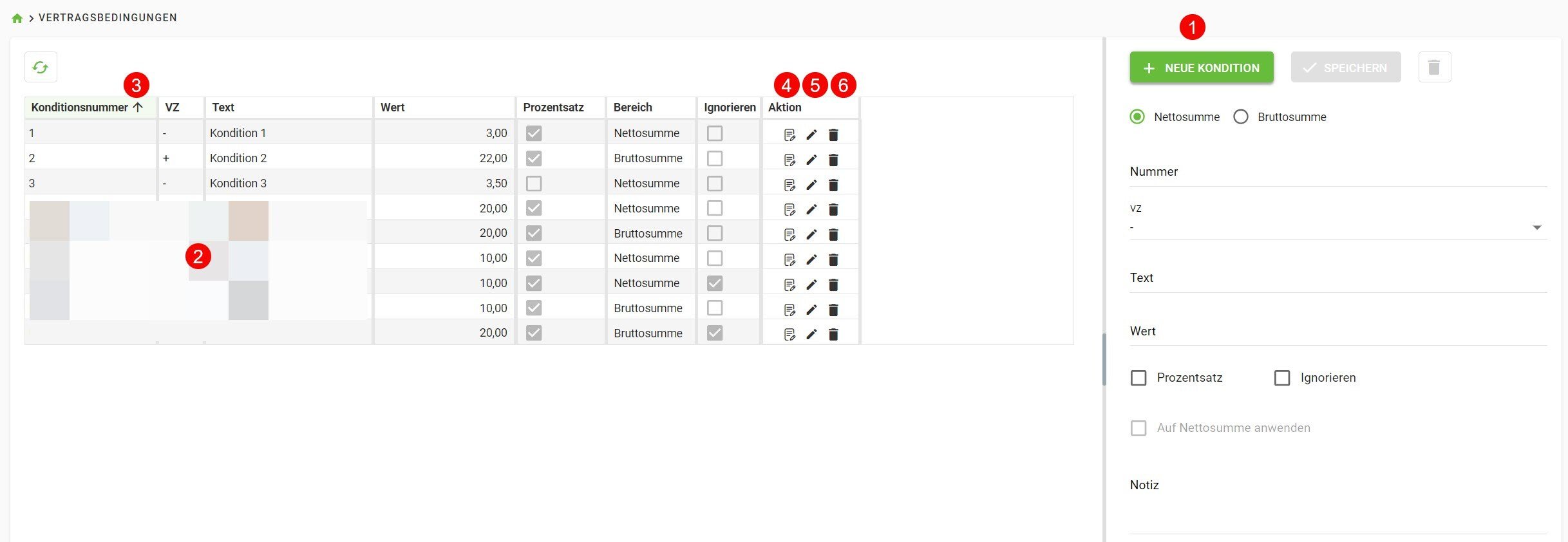 Hier können Sie verschiedene Konditionen anlegen, damit Sie bei der Festlegung der Vertragsbedingungen in den Projektdaten darauf zurückgreifen können.