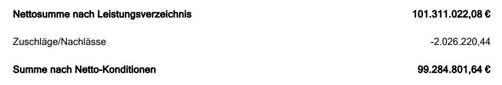 • Gesamtsumme - Bei dieser Variante wird ein Pauschalpreis nur auf Ebene des gesamten LVs ausgewiesen.