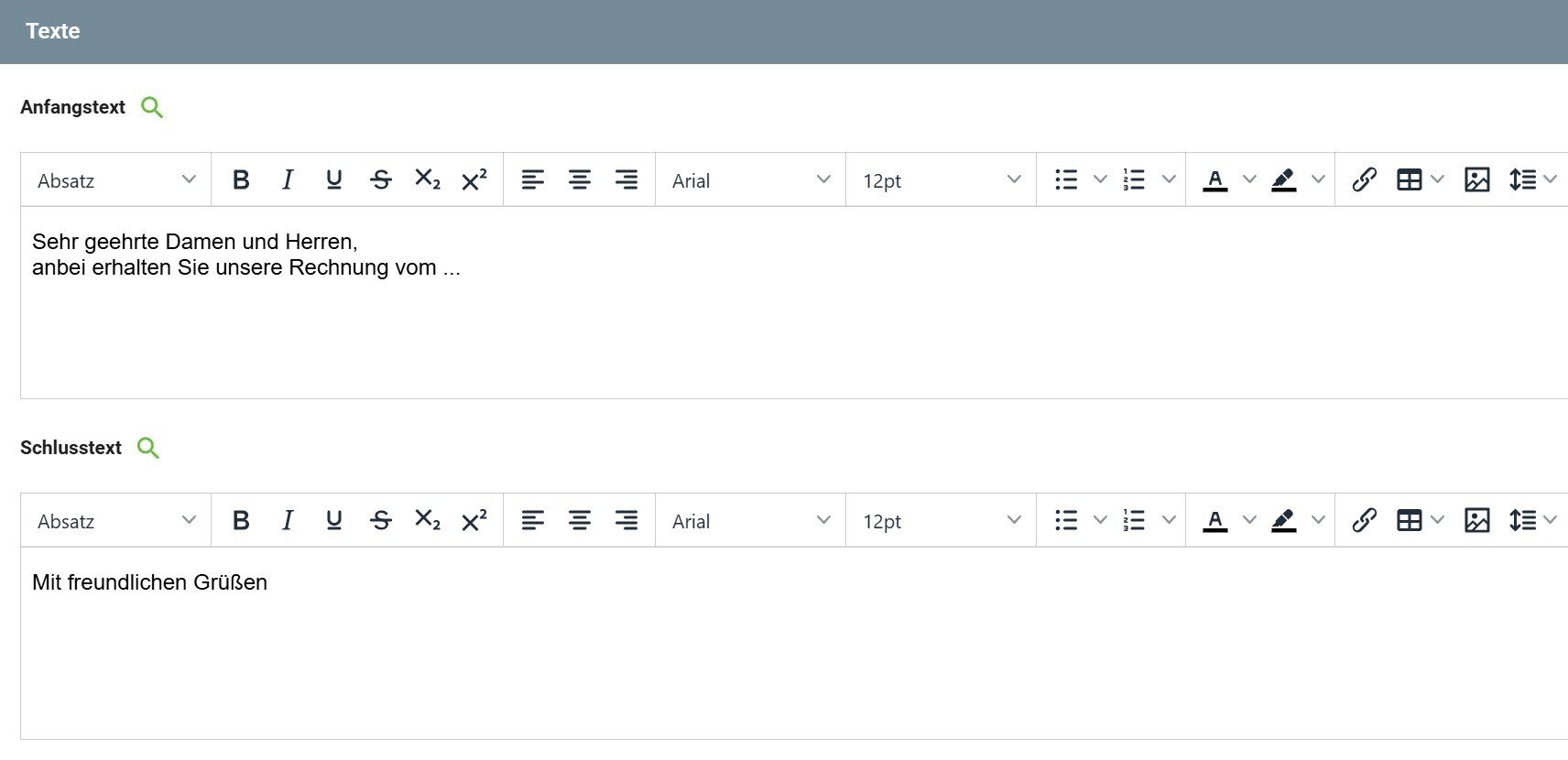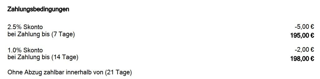 • Zahlungsbedingungen - sofern Sie diese in den Vertragsbedingungen vorab eingestellt haben.