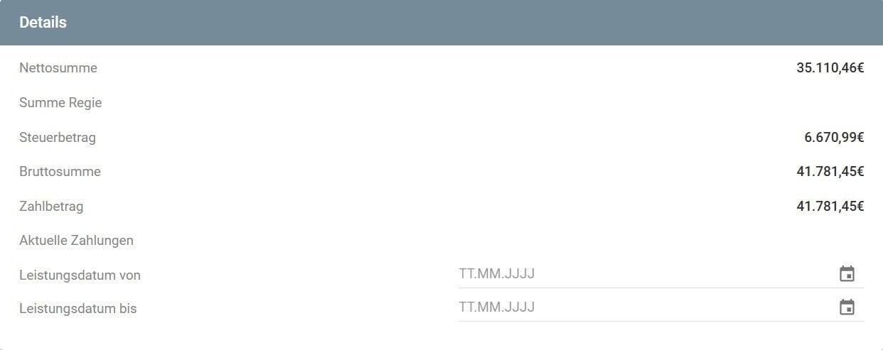 Einzel-Rechnung: Bei dieser Rechnung werden in sich geschlossene Leistungen innerhalb eines Projektes abgerechnet.