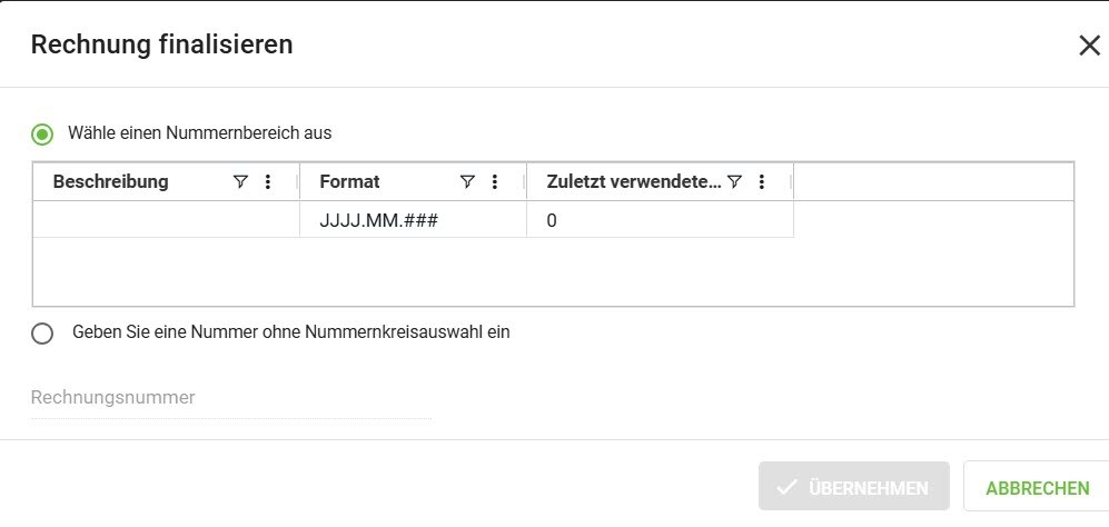 Eine Rechnungsnummer wird erst vergeben, wenn die Rechnung finalisiert wird.