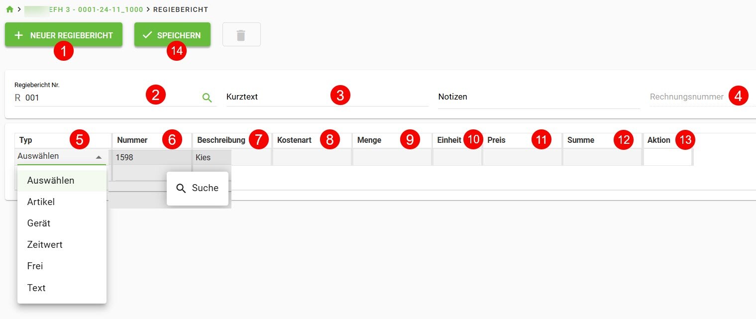 2 Geben Sie hier eine 3-stellige Regiebericht Nr. ein. Die Nummer wird automatisch erzeugt basierend auf der höchsten bereits vorhanden Nummer, kann aber auch geändert werden.