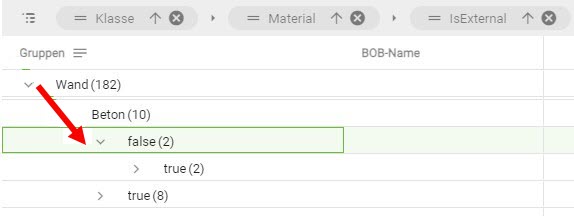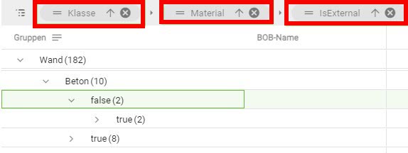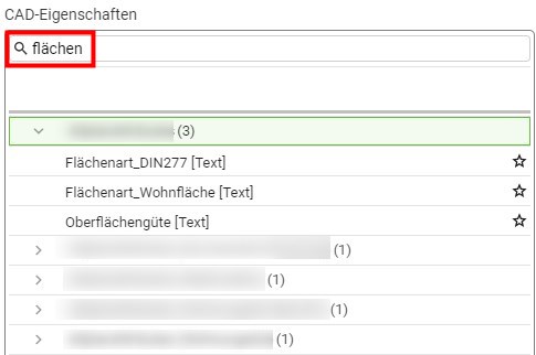 Mit Klick in das Suchfeld 2 gelangen Sie in eine Volltextsuche, mit deren Hilfe Sie jedes, in der IFC vorhandene, Attribut/Property finden können.
