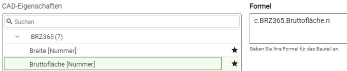 Um das Formelfeld 5 zu füllen, können Sie Attribute aus Ihren Favoriten 4 und/oder der Gesamtauswahl 3 mit einem Klick darauf auswählen.