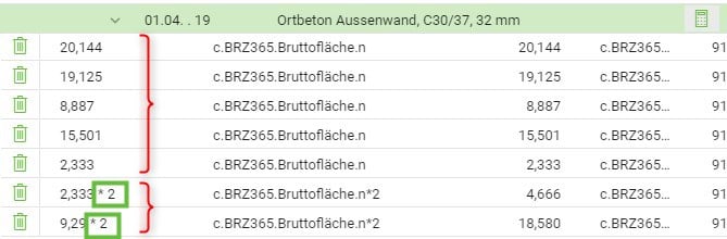 Auch das Erstellen manueller Formeln oder die Eingabe fester Mengen ist möglich.