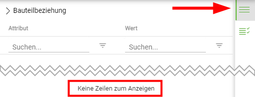 Über den Pfeil> vor Bauteilbeziehung öffnet sich, über der Attribute-Liste, ein weiterer Bereich.