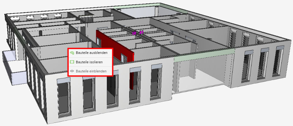 Der BIM-Viewer kann Sie bei der Arbeit an Ihrem Projekt unterstützen, sofern Sie über eine IFC-Datei Ihres Projektes verfügen. Mit seiner Hilfe können Sie sich im ersten Schritt mit dem Bauvorhaben vertraut machen, Maße und Mengen kontrollieren, Bauteilgruppen prüfen.